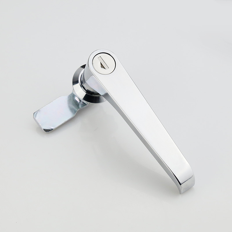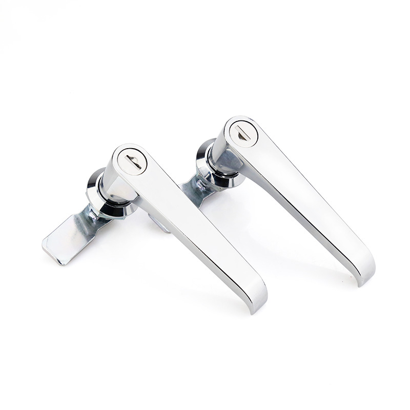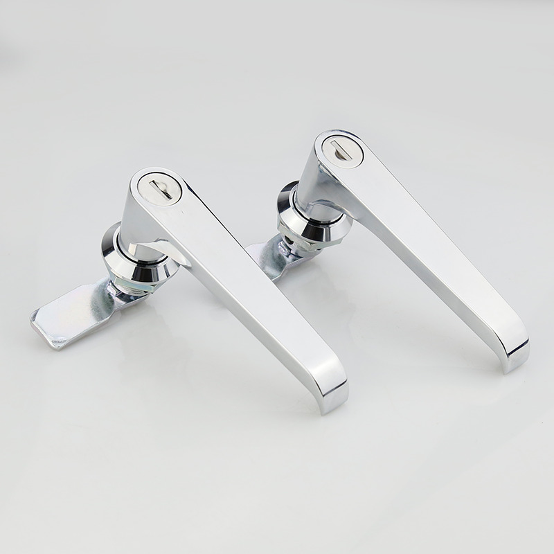 „3-punktowy zamek wahadłowy szafki sterowniczej w kształcie litery L” to zamek zabezpieczający do szaf sterowniczych. Posiada trzypunktowy mechanizm blokujący i wahadłową rączkę w kształcie litery „L”. Produkt ma na celu zapewnienie skutecznej ochrony bezpieczeństwa, aby ważny sprzęt i aktywa w szafie sterowniczej były wyłączone przed nieuprawnionym dostępem lub operacjami. Trzypunktowy mechanizm ryglowania tego zamka powoduje, że może on zaryglować jednocześnie trzy kluczowe punkty szafy sterowniczej, zwykle znajdujące się w górnym, dolnym i środkowym położeniu szafy sterowniczej. Ten wielopunktowy system ryglowania zapewnia wyższy poziom bezpieczeństwa. Kolejną istotną cechą jest konstrukcja klamki w kształcie litery „L”, która sprawia, że korzystanie z zamka jest wygodniejsze i bardziej humanitarne. Użytkownicy muszą jedynie łatwo obrócić uchwyt, aby łatwo zablokować lub odblokować szafę sterowniczą bez użycia dodatkowych narzędzi lub nadmiernej siły.
